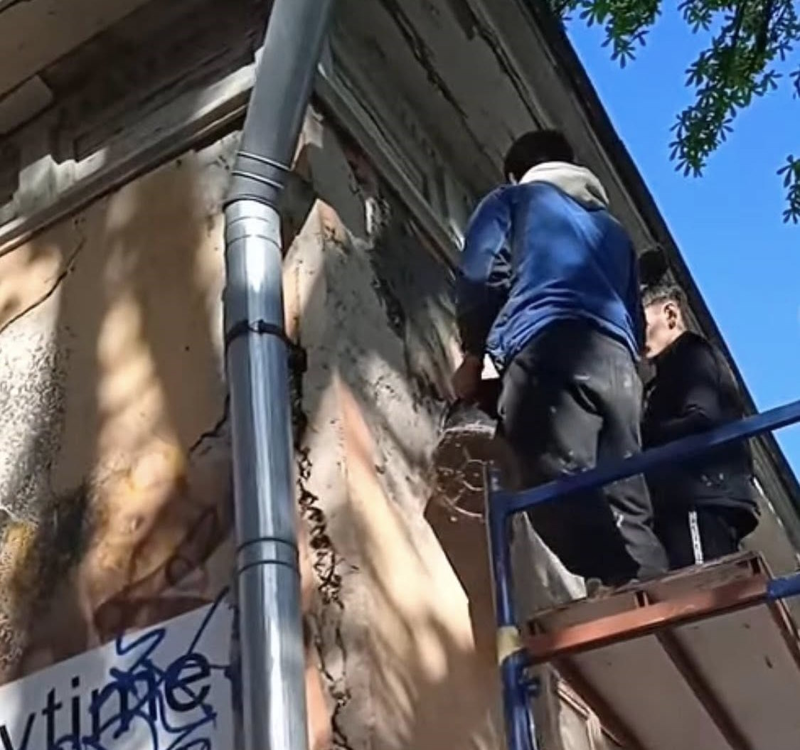 «Роботи з обивки памʼятки архітектури пінопластом – «Будинок з хлібною лавкою», 1865 року – тривають», — написав Дмитро Перов.