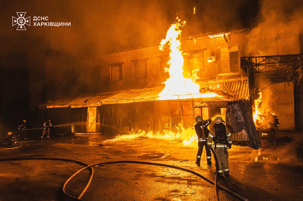 Вночі місто Харків знову опинилося під масованими ударами російських БпЛА. Під прицілом рашистів також були цивільні об’єкти, внаслідок цього виникли масштабні пожежі та руйнування будівель. За попередніми даними, жертв та постраждалих немає. На місці події під загрозою повторних ворожих ударів працюють підрозділи ДСНС та комунальні служби міста. Тривають роботи з ліквідації пожеж та розбору завалів.