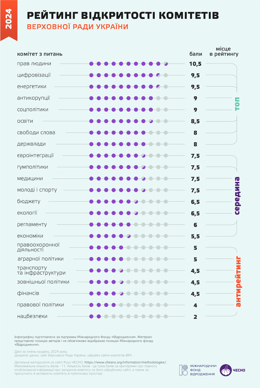 Водночас найнижча оцінка работи в Комітету з питань нацбезпеки та розвідки. Адже він не викладає аудіо- та відеозаписи засідань, а також стенограми та протоколи, обмежуючись лише публікацією порядків денних.