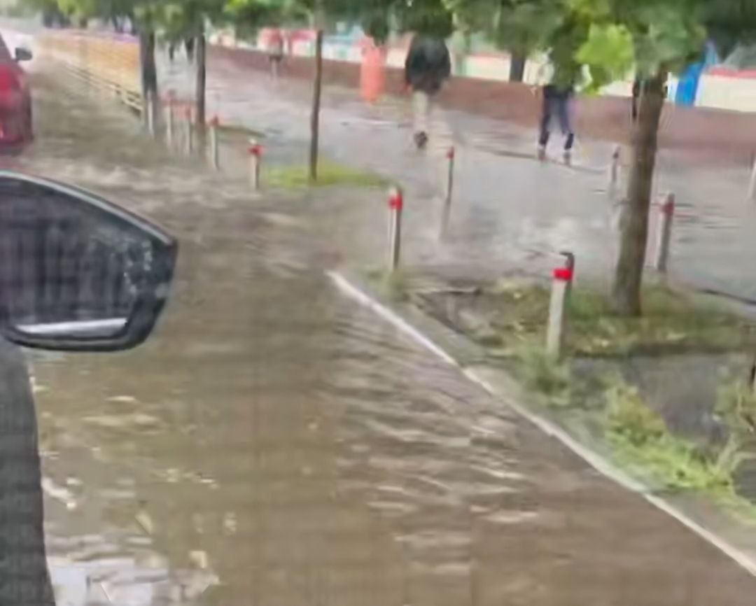 Потужна гроза з градом, яка накрила сьогодні Київ, за лічені хвилини затопила вулиці.