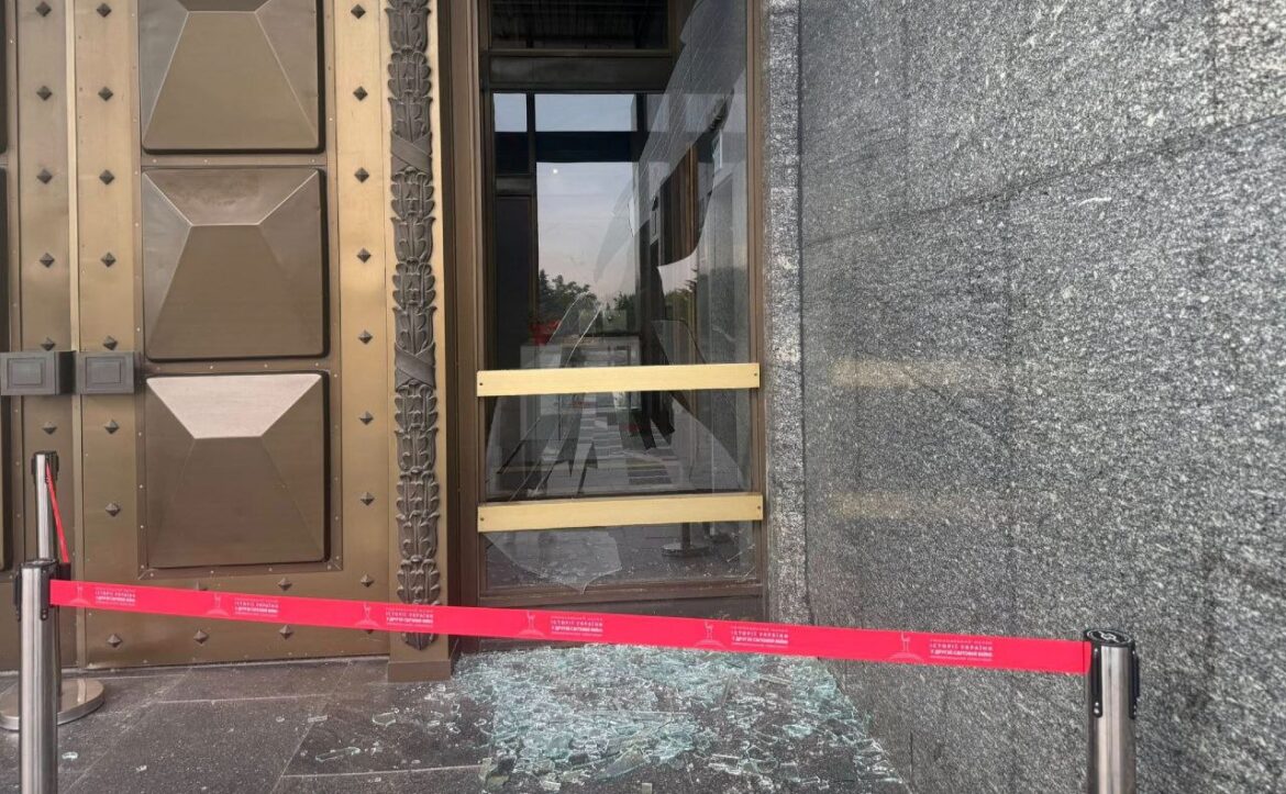 Сьогодні вночі під час рашистських повітряних ударів вибуховою хвилею було пошкоджено фасад головного корпусу Музею війни в підніжжі монумента «Батьківщина-мати»