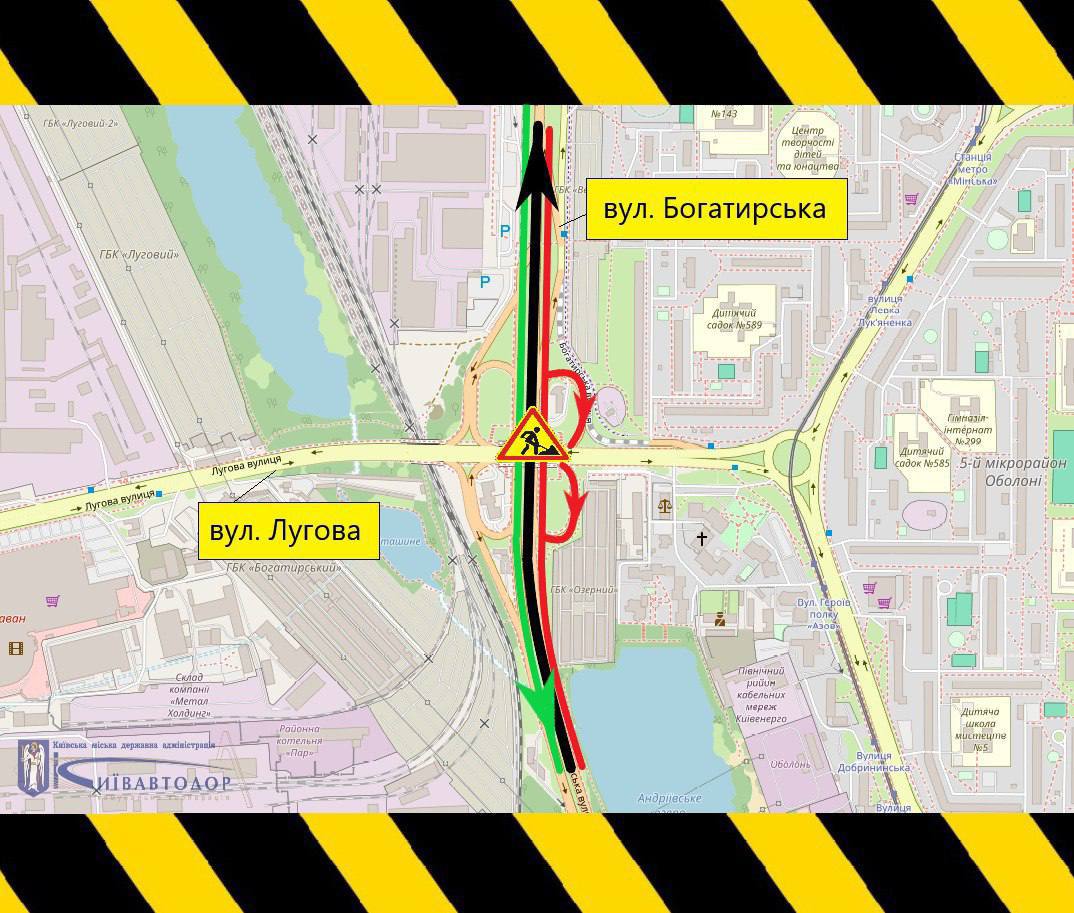Цього разу, зазначили в «Київавтодорі», роботи триватимуть на протилежному боці ділянки від АЗС «KLO» (вулиця Богатирська, 1 Г) до заводу ПрАТ «Оболонь»: там ремонтники розбиратимуть старе покриття та влаштовуватимуть нові шари “дорожнього одягу”.