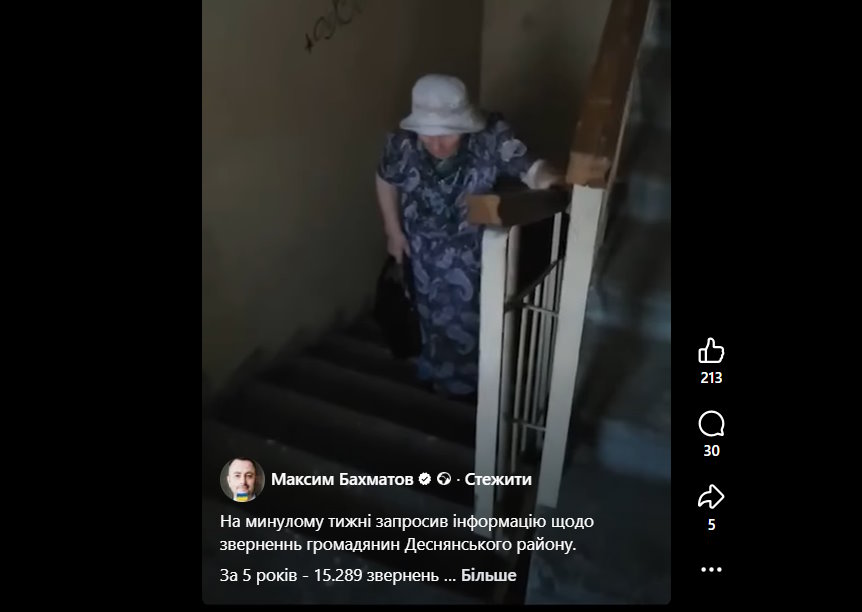 Максим Бахматов розмістив у Фейсбук також звернення від мешканця Деснянського району.